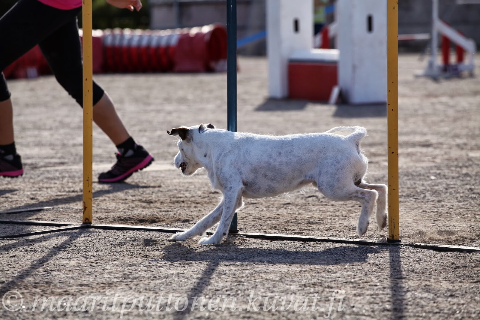 Elokuun loppupuolella kisailtiin Wecalla kolme starttia. Tuomarina Katarina Wirkkala ja Vesa Sivonen, joilla ihan ok radat. A:n kontakti tuotti vaikeuksia ja se, etten itse keskittynyt tuleeko masteri kontaktipinnalle vai ei vaan vapauttelin omia aikojani. Molemmat agiradat meni hyllyksi ja oli kyllä sellasta sähläystä, että huh huh. Oli jotenkin todella epävarma olo näillä radoilla. Alla vähän kuvasatoa WECAn kisoista