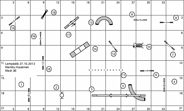 Sunnuntaina 27.päivä ajeltiin Tarun, Zipin ja Soolon kanssa lempäälään kisaamaan kolme starttia. Tuomarina toimi uusi tuttavuus ja ekoja virallisia kisojaan tuomaroiva Markku Kaukinen, joka oli tehnyt ihan mukavat radat. Päivä alkoi hyppyradalla, joka näytti tältä: